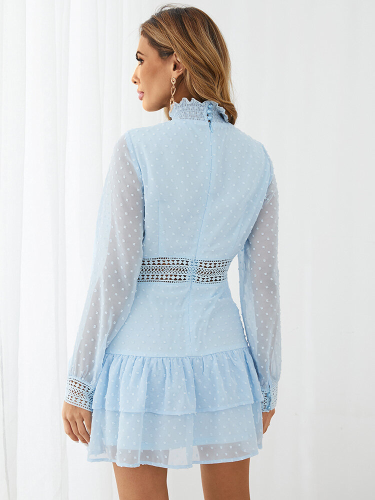 Solid Hollow Layered Long Sleeve High Neck Dress