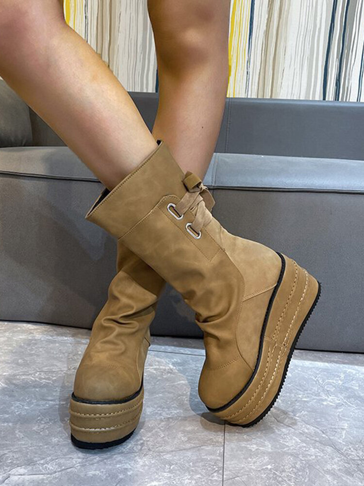 Large Size Women Casual Back Lace-up Comfy Platform Mid Calf Boots
