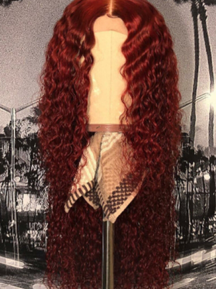 Purple Potato Red Mixed Color Long Water Ripples Curly Hair With Air Bangs Fashion Synthetic Wig For Daily Use And Masquerade