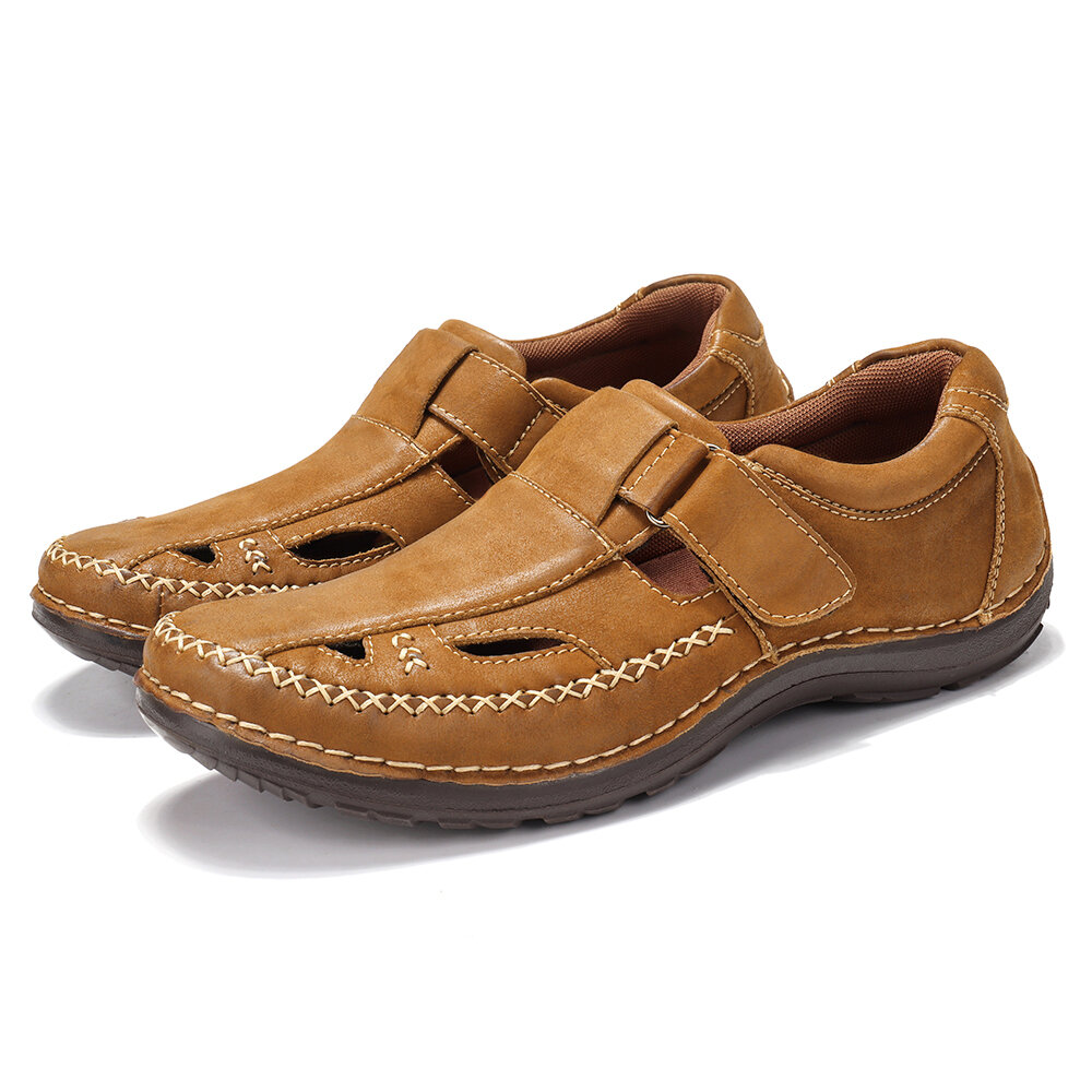 Menico Men Retro Leather Stitching Non Slip Hook Loop Casual Sandals