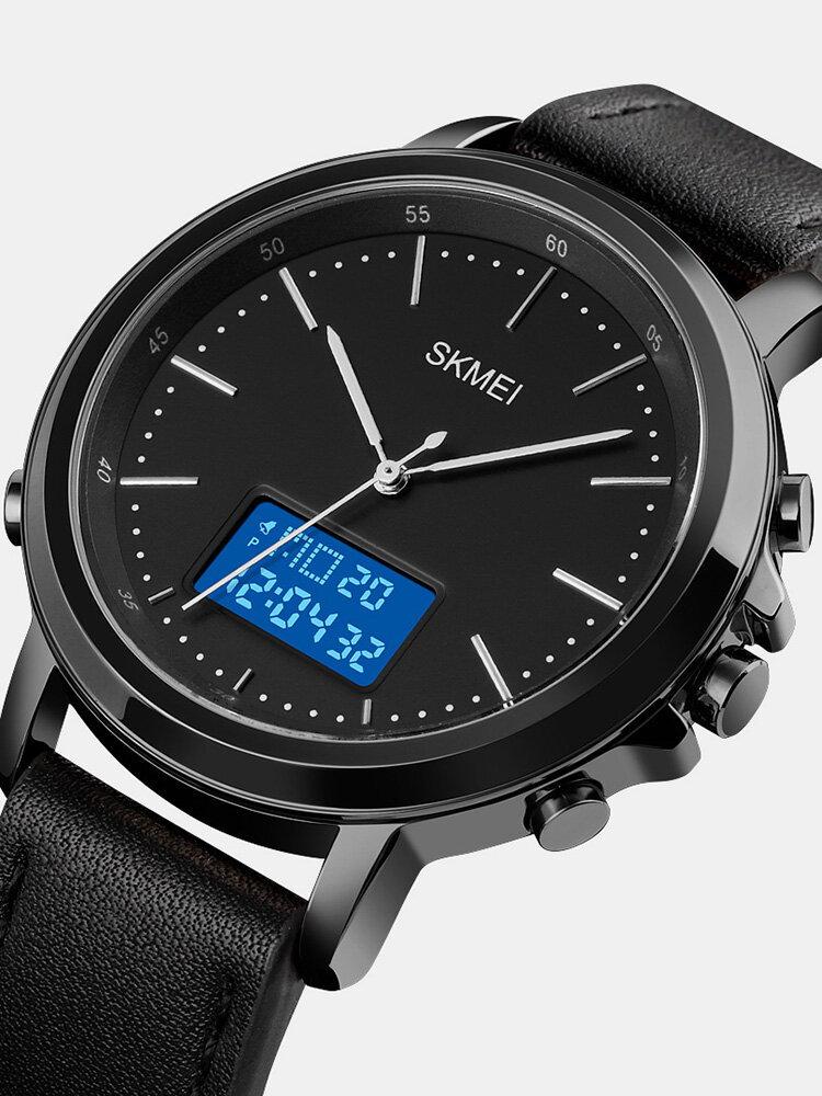 Leather Alarm Stopwatch Sport Watch Luminous Display Men Waterproof Dual Display Digital Watch
