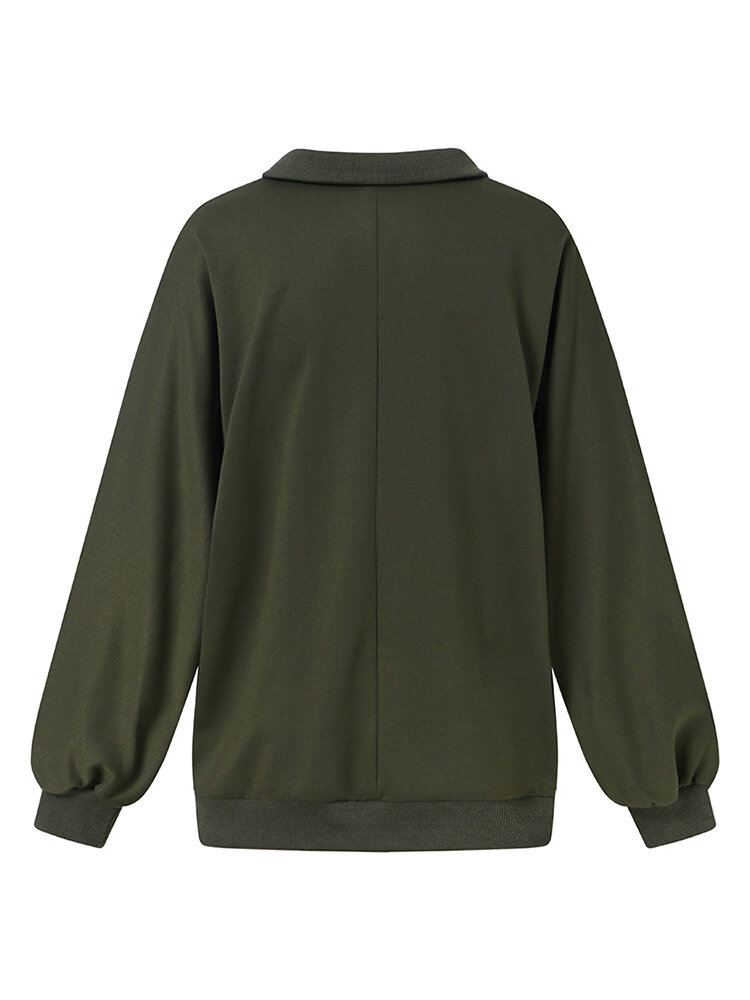Patch Contrast Color Zipper Loose Pullover Sweatshirt For Women
