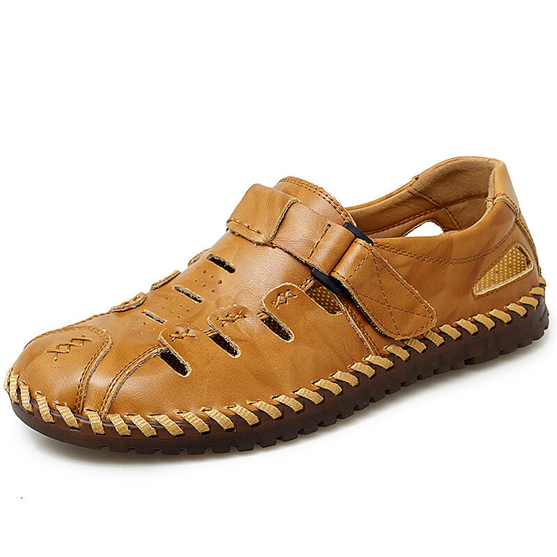 Men Hand Stitching Leather Non Slip Hook Loop Casual Sandals