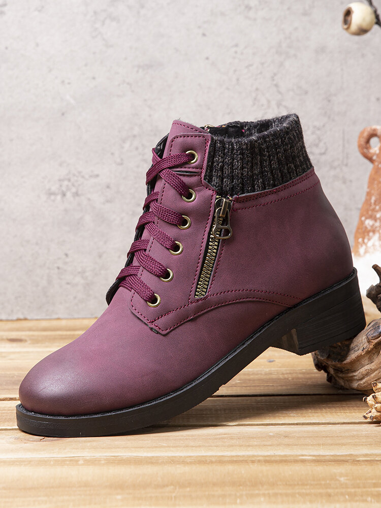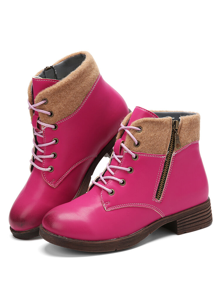 Women Retro Comfy Round Toe Stitching Side Zipper Casual Tooling Short Boots