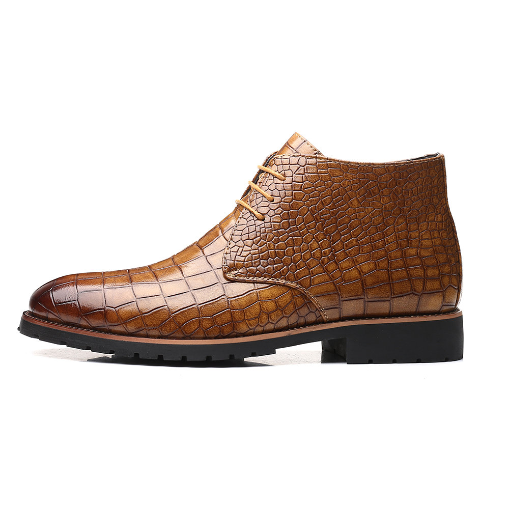 Men Vintage Crocodile Pattern Lace Up Casual Leather Ankle Boots
