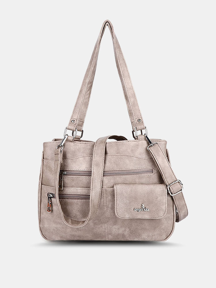 Vintage Faux Leather Waterproof Crossbody Bag Multi-pocket Large Capacity Handbag Tote