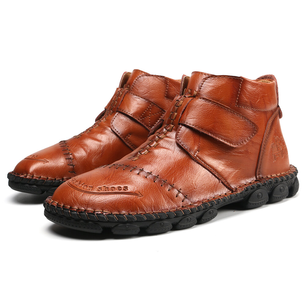 Men Hand Stitching Comfort Soft Hook Loop Leather Ankle Boots