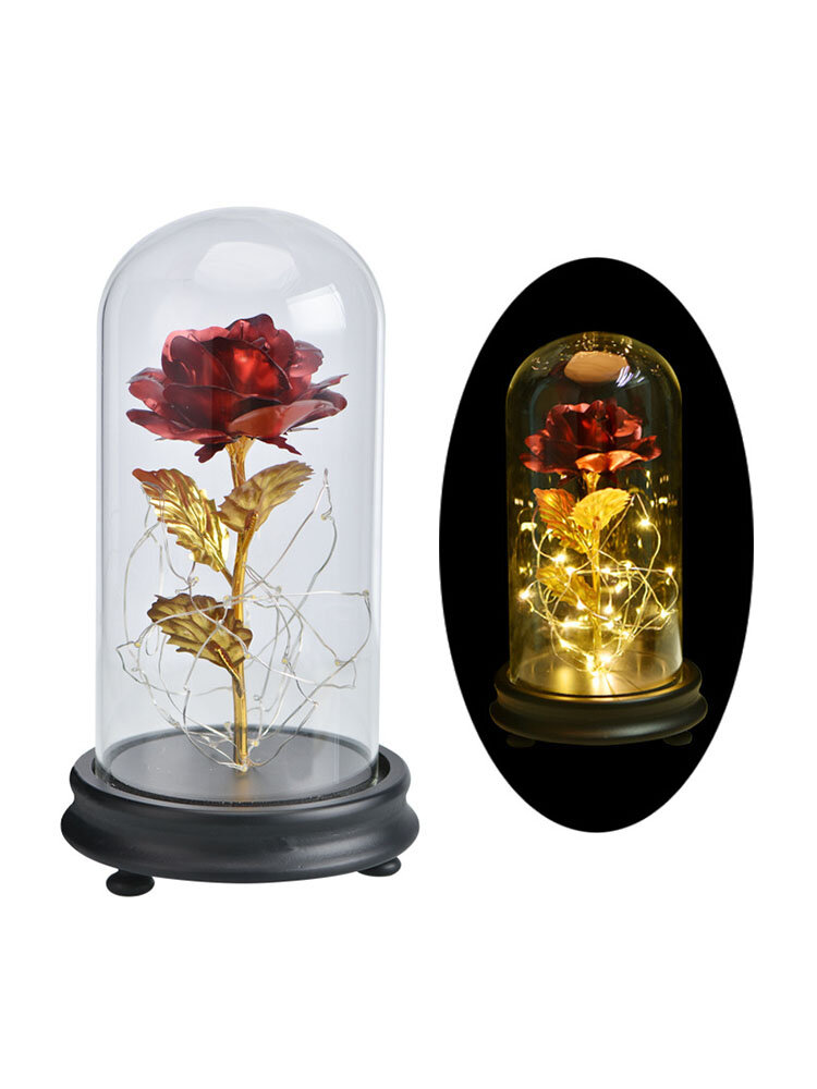 Gold Foil Decoration Flowers Red Golden Eternal Rose with LED Light in Glass Dome Gifts