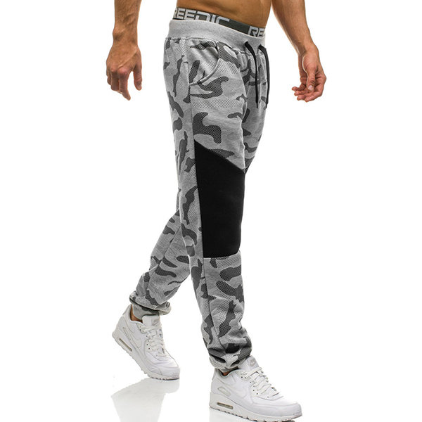 Mens Camo Drawstring Elastic Waist Slim Fit Fitness Jogging Casual Sport Pants