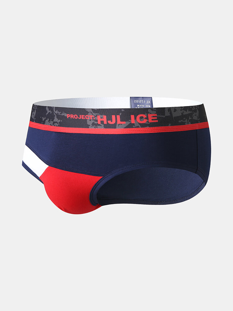 Sexy Colorblock Patchwork Cotton Breathable Underwear Thin Stitching Elastic Brief for Men