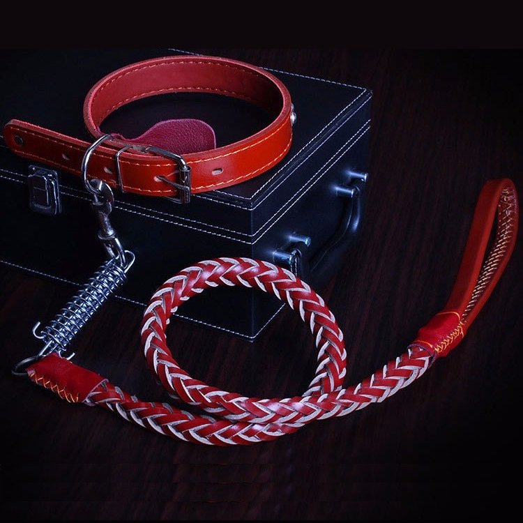 4 Colors Deluxe Leather Dog Lead Leash Pet Training Leather Leash for Medium Large Dog