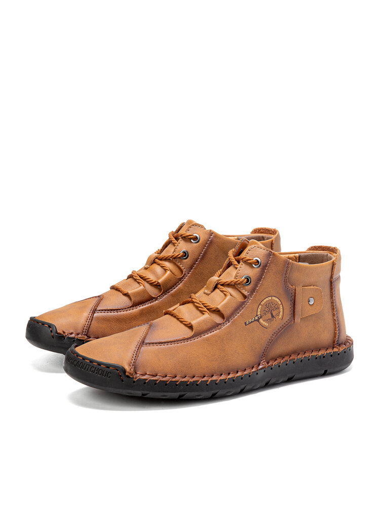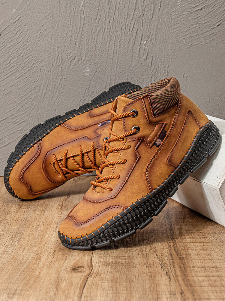 Men Hand Stitching Microfiber Leather Lace Up Ankle Boots