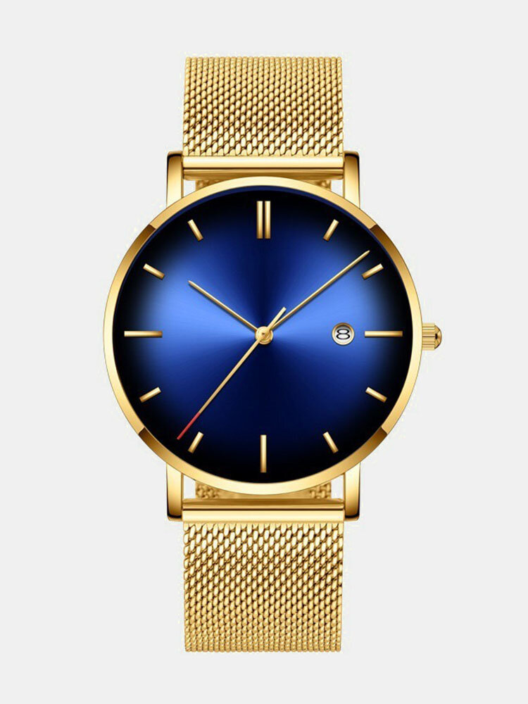 Alloy Business Gradient Color Multi-function Mesh Strap Watch