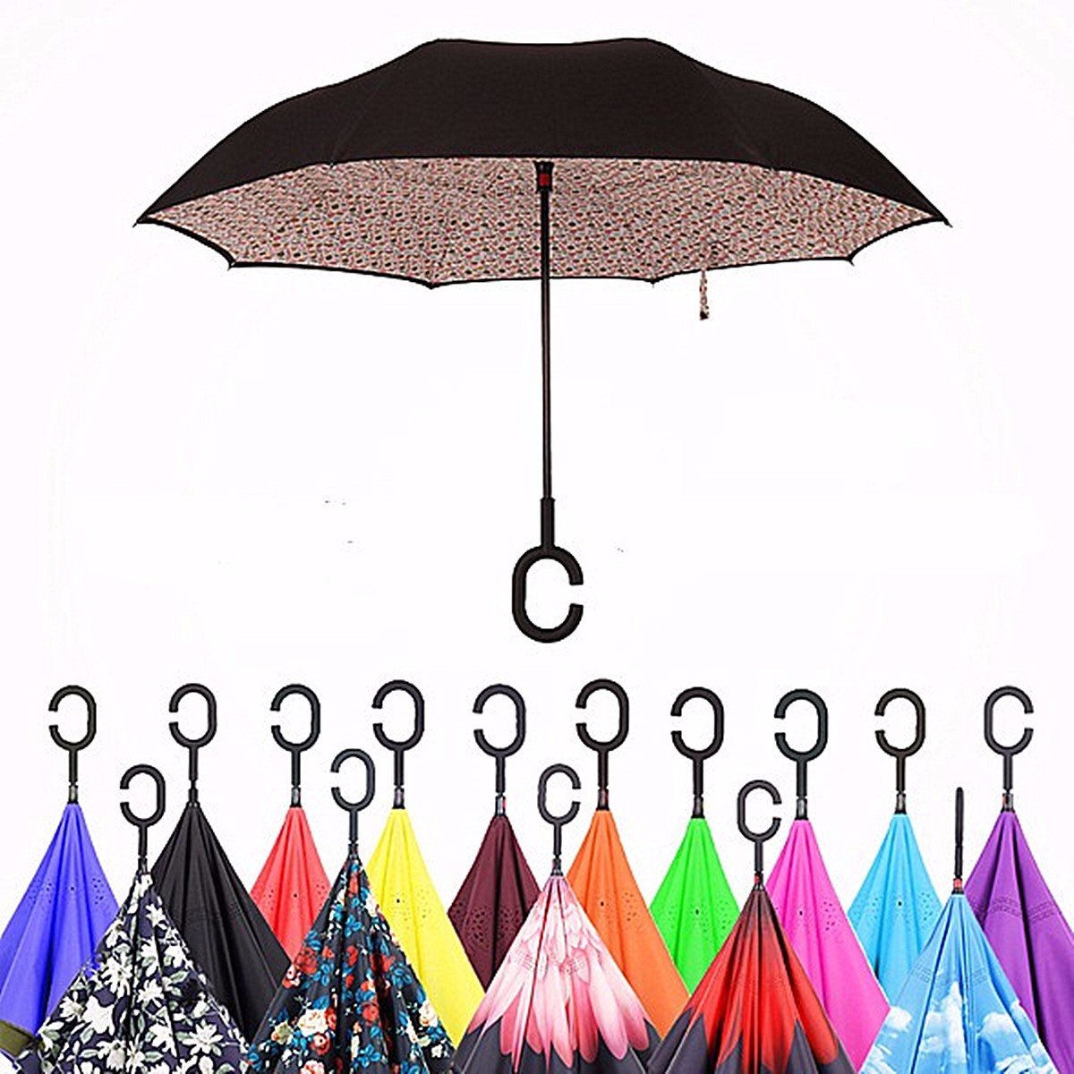 C shaped Multi Color Double Layer Inverted Reverse Umbrella