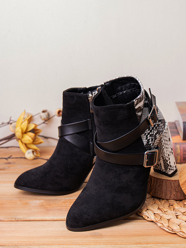 Plus Size Fashion Snake Pattern Patchwork Comfy Side-zip Block Heel Boots For Women