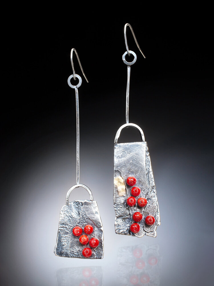 Vintage Lock-Shaped Bag Women Earrings Little Red Coral Asymmetry Pendant Earrings