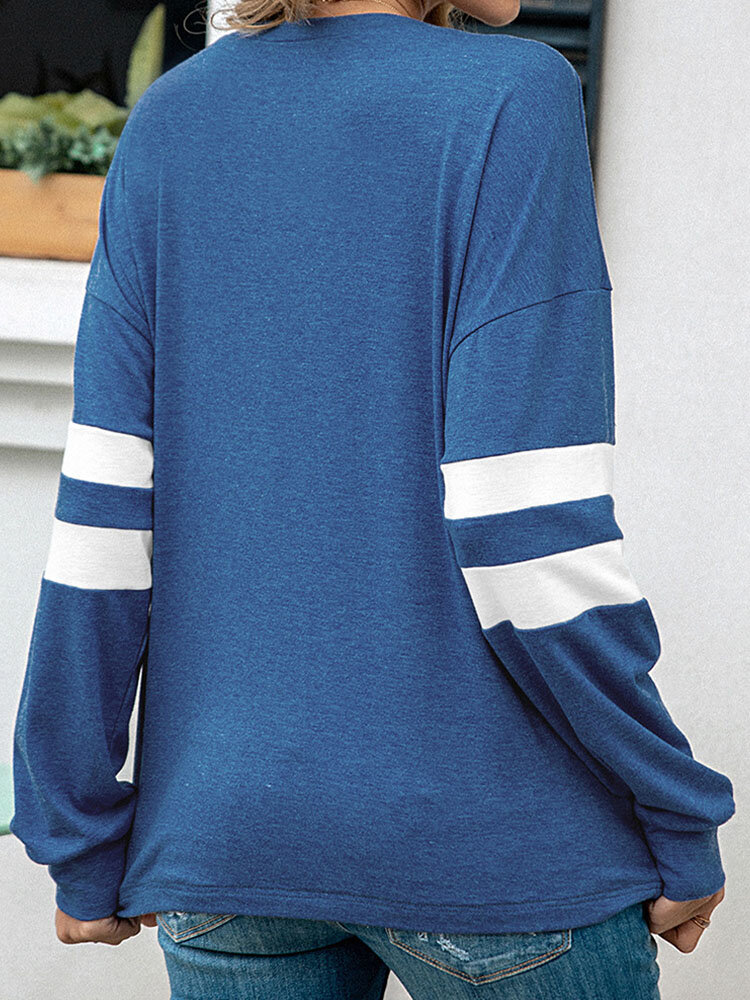Striped Print Button Hooded Casual Hoodies for Women
