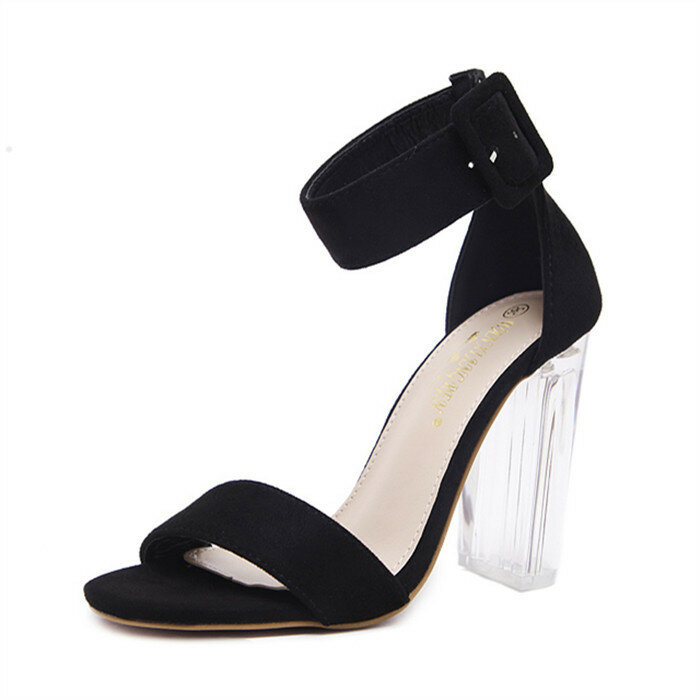 Buckle Transparent Chunky Block Heel Peep Toe Sandals