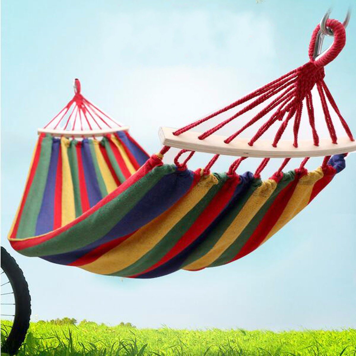 Double 2 Person Hammock Green Fabric 450lb Air Hanging Swinging Outdoor Camping