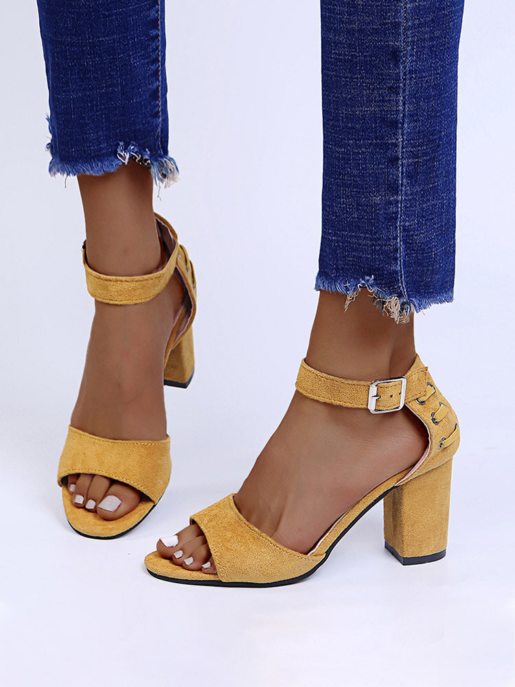 Large Size Women Suede Peep Toe Solid Color Buckle Strap Heels Sandals