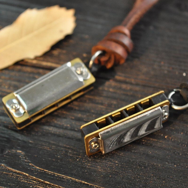 Personality Vintage Men Women Necklace Mini Cowhide Chain Alloy Harmonica Pendant Necklace