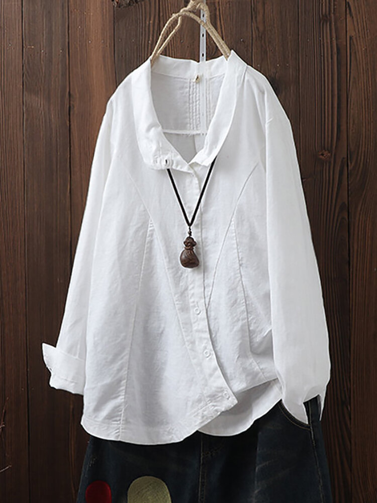 Vintage Solid Color Irregular Button Lapel Plus Size Shirt